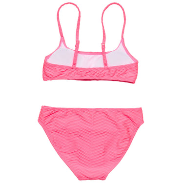 Say hello to the Pink Punch Crop Bikini. This vibrant two-piece features pink textured fabric with a fresh new crop fit up top and comfy bikini bottoms to match. Designed just for tweens and teens (sizes 10–16), it’s on trend shape is easy to wear all day - with soft shoulder straps, adjustable back sliders, and thin removable padding in sizes 14 and 16.
