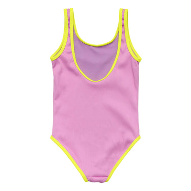 Bold, bright and ready for anything. The Vacay Pop Recycled Swimsuit is a must for girls who love to make a splash. Made in soft ribbed lilac with contrast trims, this girls swimsuit blends sporty vibes with standout style.