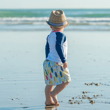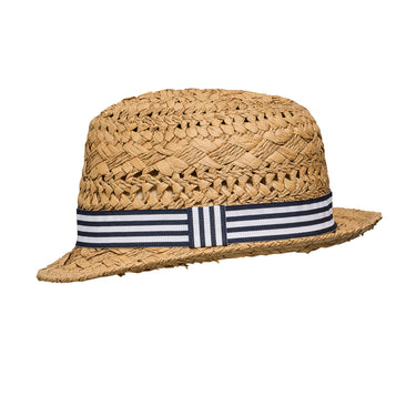 Don't let the sun cramp his style get him a straw fedora hat and watch him stand out from the crowd! This sun hat for boys is crafted from woven paper straw and features a stylish stripy ribbon that will add sophistication to any little gentleman's outfit.