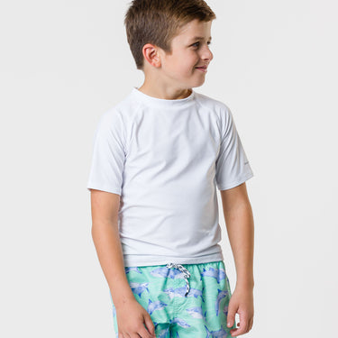 A Snapper Rock classic, our White rash top matches back to a wide range of board shorts.