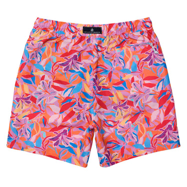 Dads can sport a matching look with the kids in these bright and bold men's swim shorts, featuring the same tropical-inspired print. They're equipped with a robust, adjustable drawcord waist and a secure, zipped back pocket for practical, stylish beach days or casual poolside lounging.