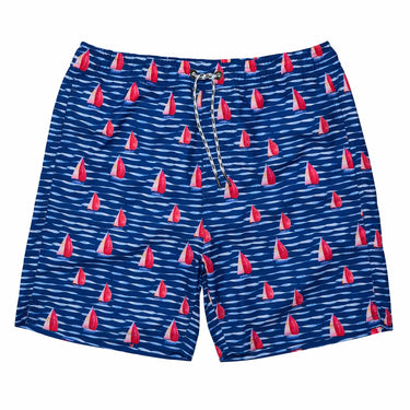 Set course for summer fun with these men's swim trunks, sporting a sailboat print that matches your mini me's shorts. Designed with a secure drawcord waist and ample pockets, they're perfect for everything from a day on the boat, to relaxing by the pool, ensuring you stay comfortable and stylish all day long.