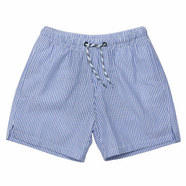 Sail through summer in these Parisian-inspired swim shorts, featuring classic striped fabric. They're outfitted with a secure drawcord waist and a white zippered back pocket for safekeeping essentials.
