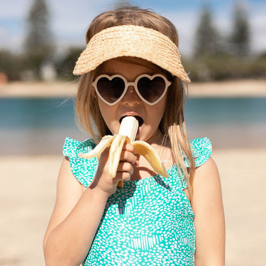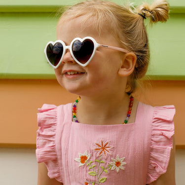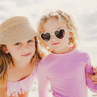 Who wouldn't love these adorable White Heart Frankie Ray sunglasses, with pale pink arms. Throw on a bucket hat and know that your littlest beach goer is fully protected from the sun.