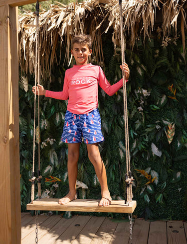 From the sailboat-print swim shorts to the short-sleeved sunsuit, the Sailboat Rock collection is crafted for comfort, practicality, and style. Whether you're enjoying a day on the boat, building sandcastles on the shore, or lounging by the pool, these designs ensure you and your little sailor are ready for any adventure in matching swimwear for boys.