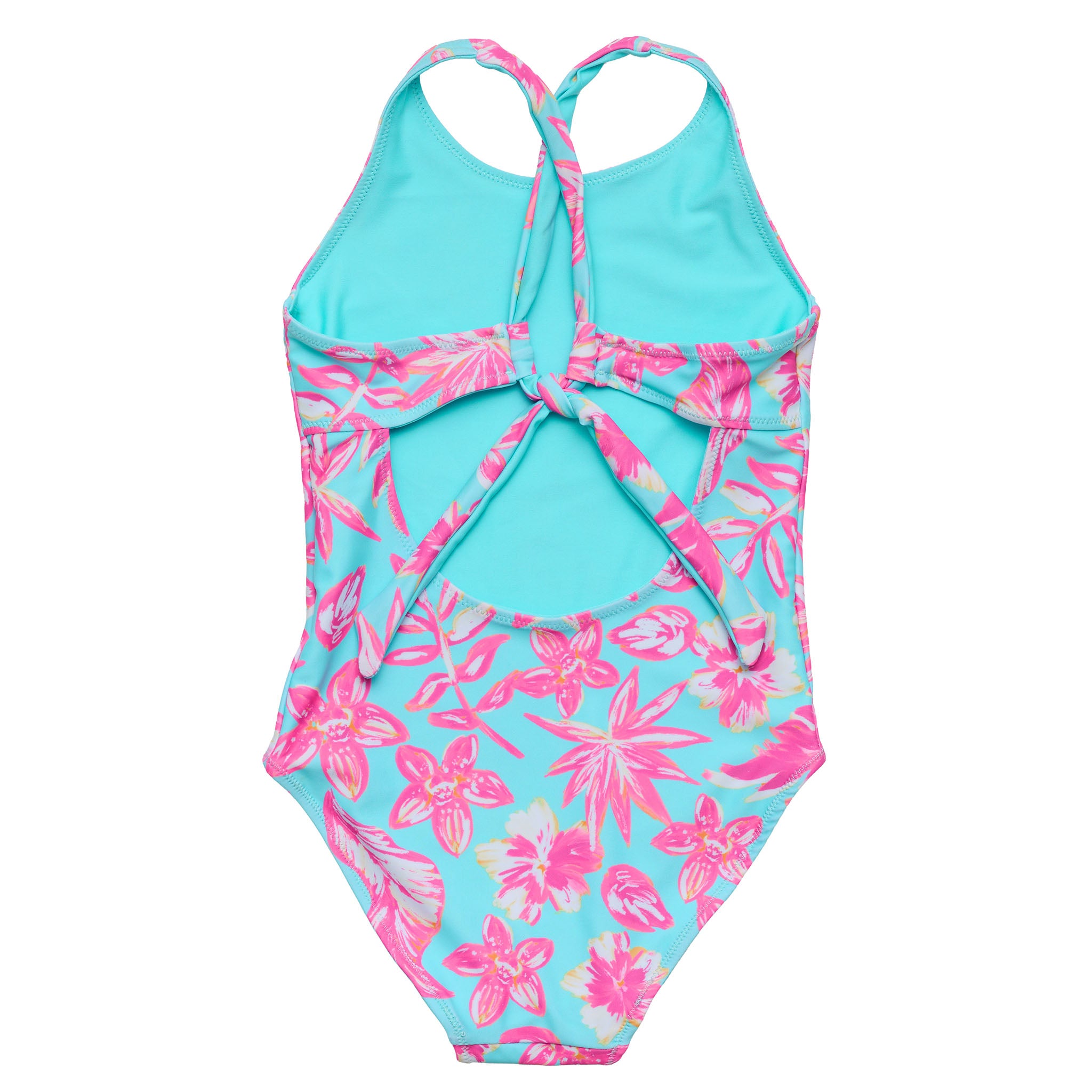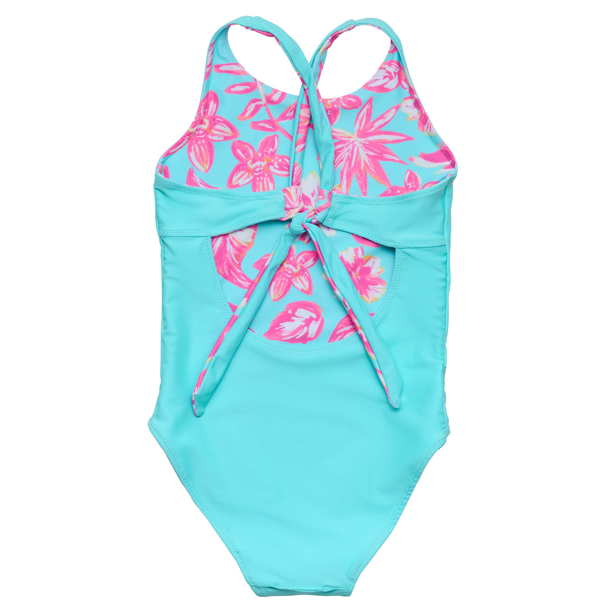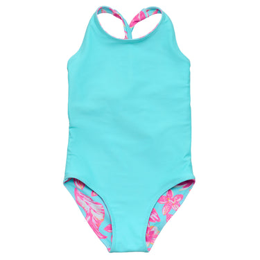One swimsuit, two ways to wear it. The Tropical Glow Recycled X Back Swimsuit is fully reversible, letting you switch between our vibrant Tropical Glow tropical floral print and a clean aqua reverse.