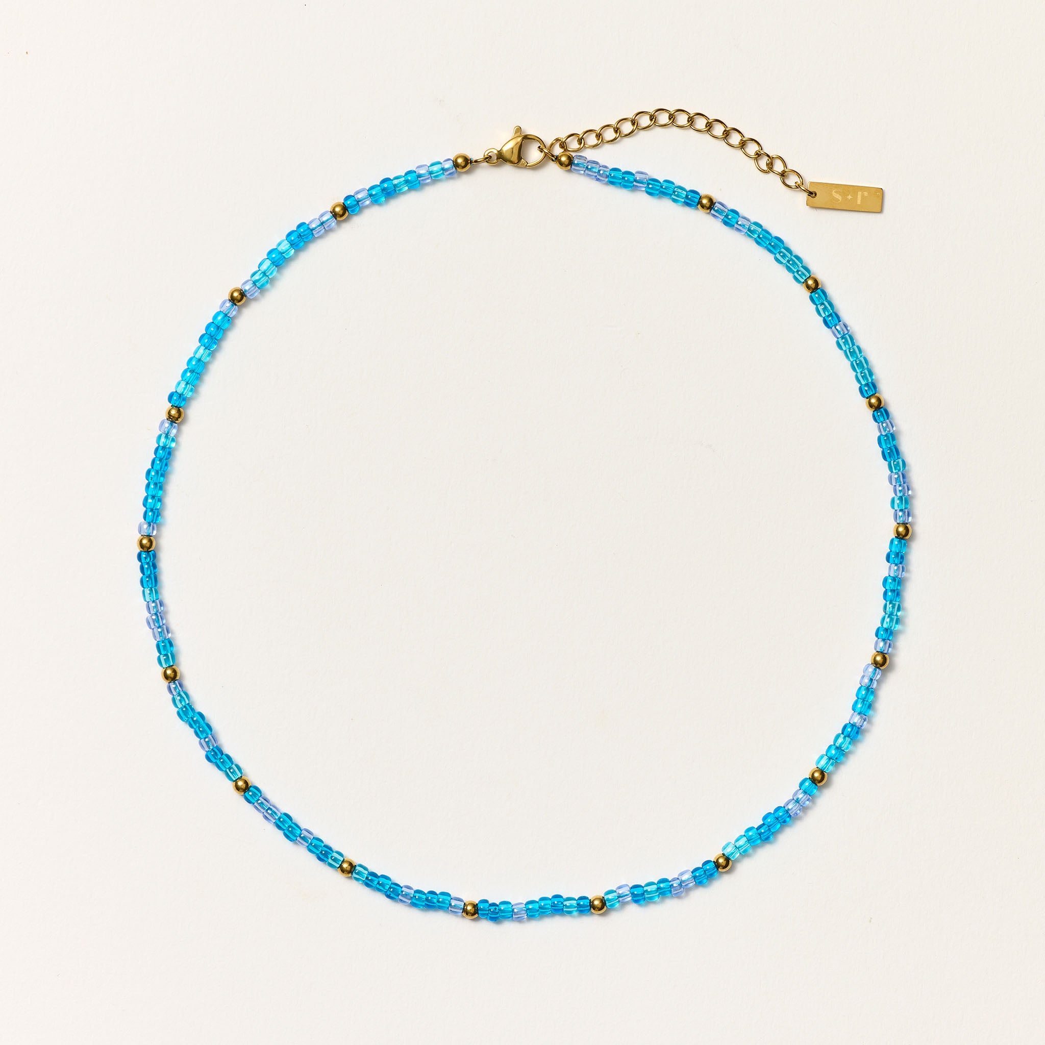 The perfect accessory to wear with your Snapper Rock bikini. The Blue Lagoon Necklace adds that extra something your swim look needs. Bright blue beads, subtle gold details, and a clean finish that pops against bold prints and summer color.