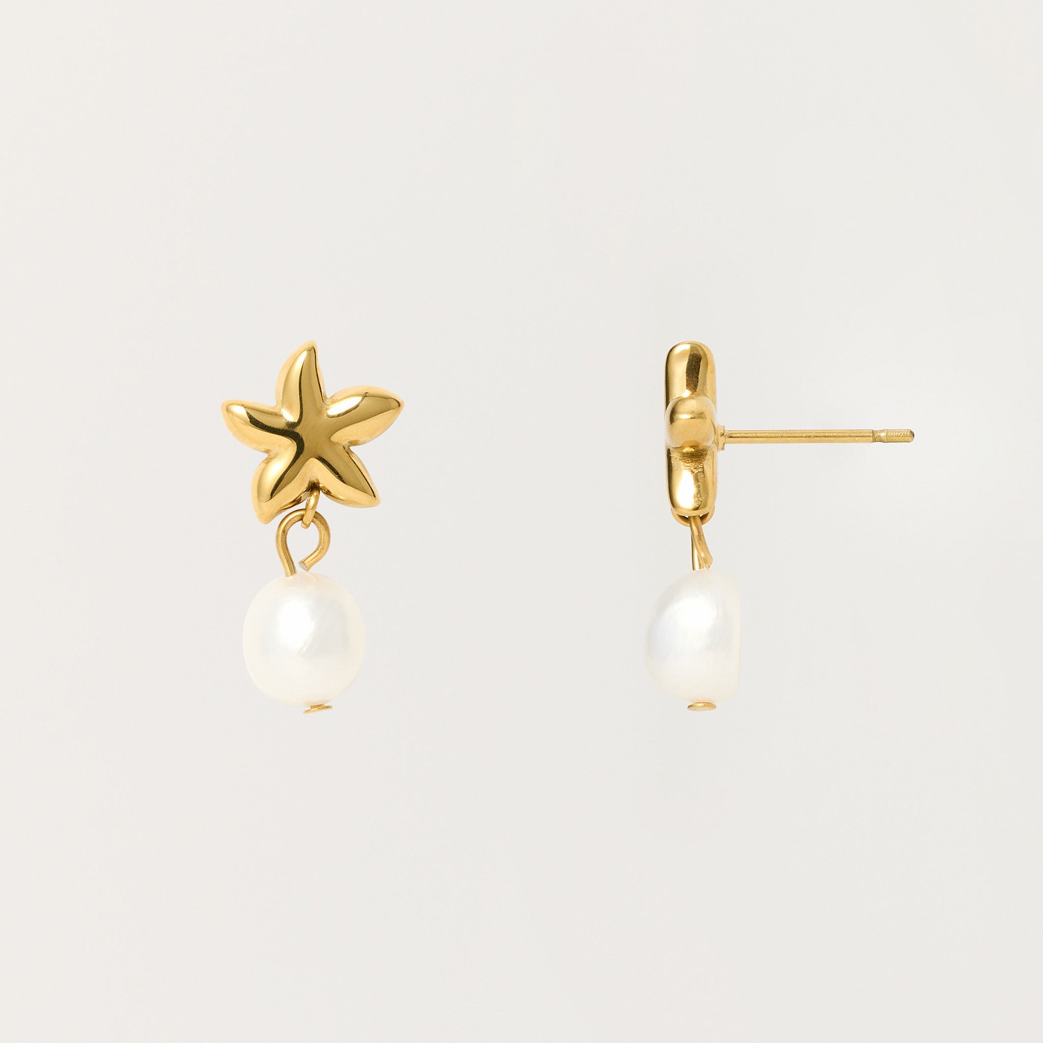 Our Pearl Wish Earrings pair a bold gold star stud with a natural freshwater pearl drop for a look that stands out straight away.