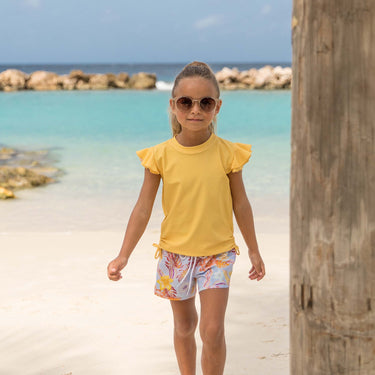 - Choose from 3 matching rash tops - Marigold Sustainable Flutter Sleeve, Marigold Stripe Long Sleeve, or the Boho Tropical Sustainable Long Sleeve to complete the outfit.