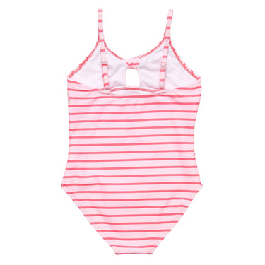 From playing in the sand to jumping in the pool, what your little adventurer needs is this pretty-in-pink sustainable one-piece swimsuit for girls. Featuring a tie-up bow and shoulder straps, it's easy to adjust and will never get in the way of playing in the water.