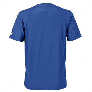 This UV50+ short sleeve rash top for men in denim blue has a relaxed fit, in a durable comfortable stretch fabric.